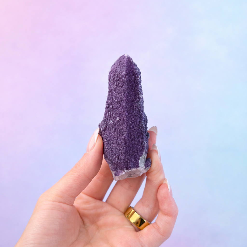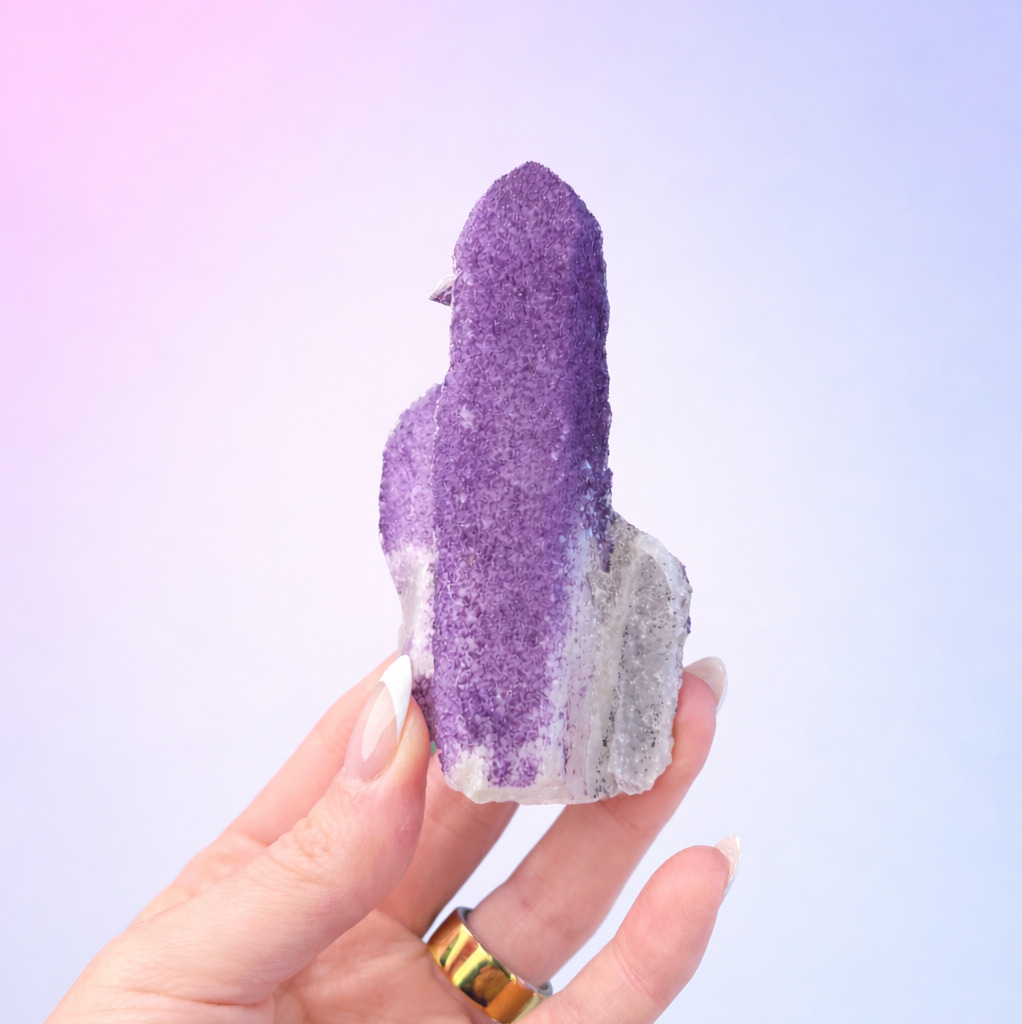 Mental Clarity & Focus: Purple Fluorite is known for sharpening the mind and clearing mental fog. When combined with Candle Quartz, it is believed to enhance concentration, organized thinking, and spiritual insight.